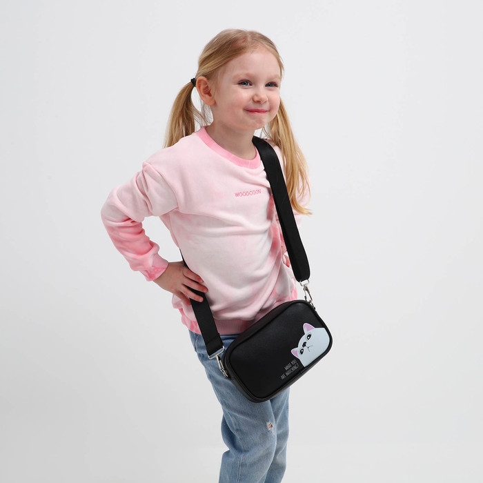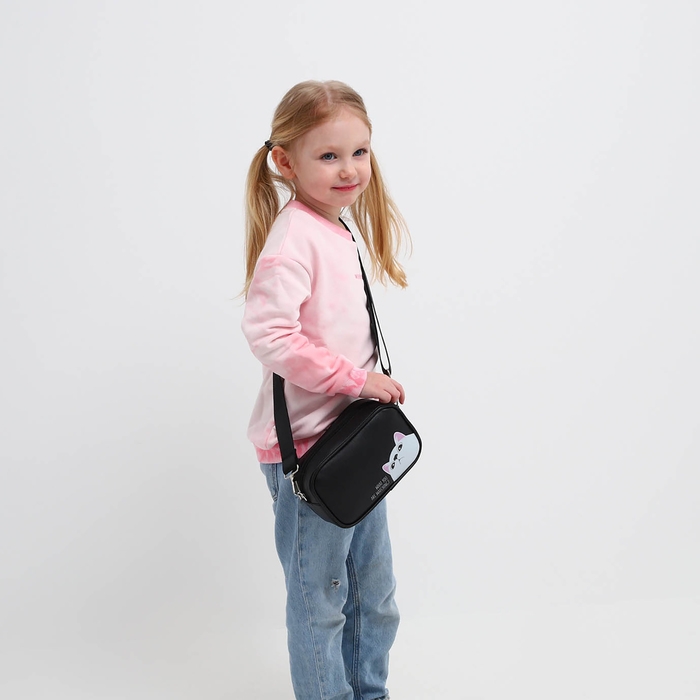 Сумка детская What are you watching?, на ремешке, черная, 18х11х6 см