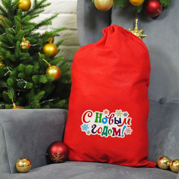 Новогодний мешок Деда Мороза «С Новым Годом! Снежинки», 40 × 60 см