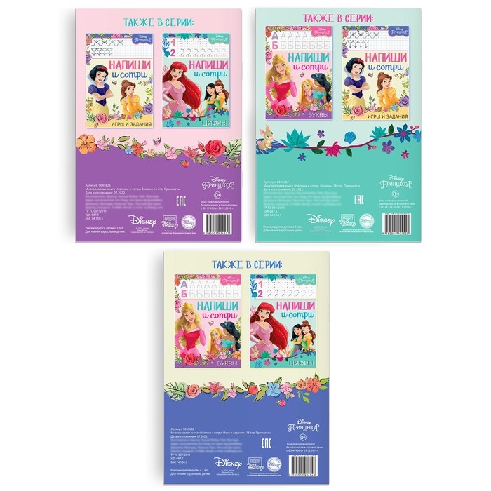 Яркие иллюстрации с любимыми принцессами из вселенной Дисней сделают занятия веселее и интереснее.