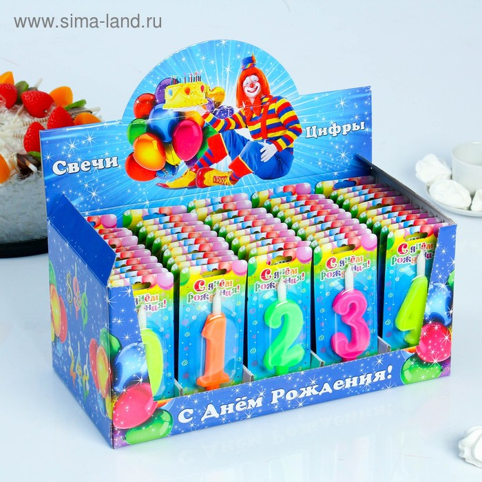 Шоу-бокс со свечами для торта цифры "Классика". 10,2 см, 50 штук