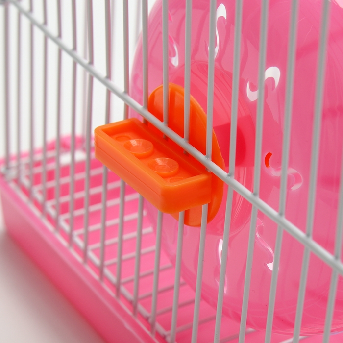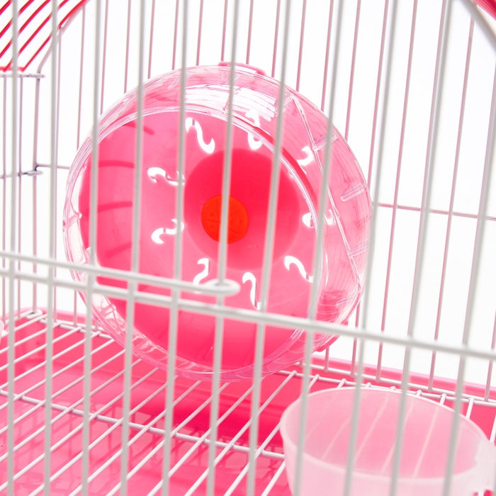 Внутри клетки есть беговое колесо, которое поможет вашему грызуну поддерживать физическую форму и заняться любимым делом.