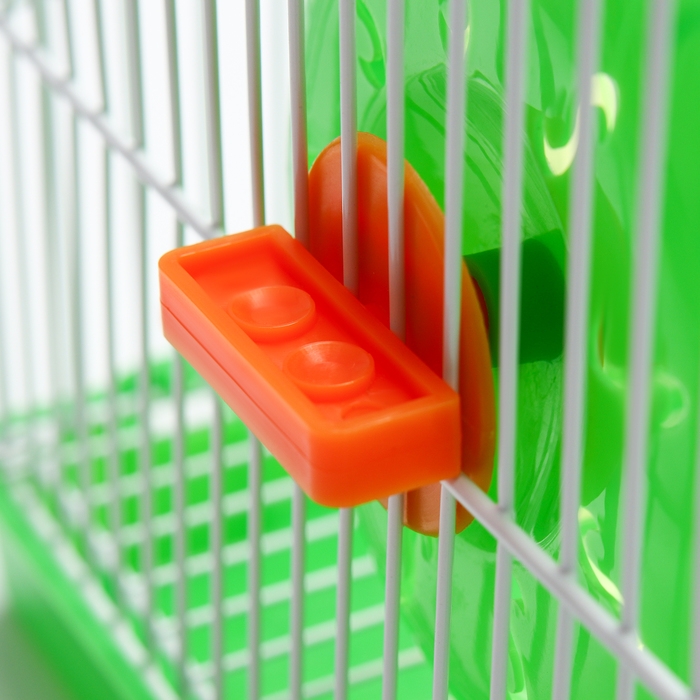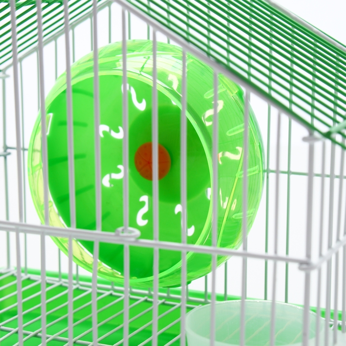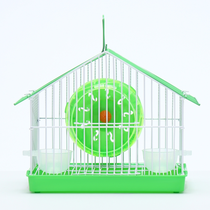 Внутри клетки есть беговое колесо, которое поможет вашему грызуну поддерживать физическую форму и заняться любимым делом.