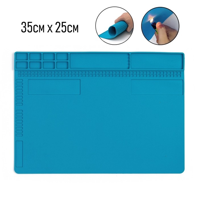 Термостойкий коврик позволяет организовать рабочее место и защищает элементы, находящиеся под ним, от температурного воздействия и статического заряда.