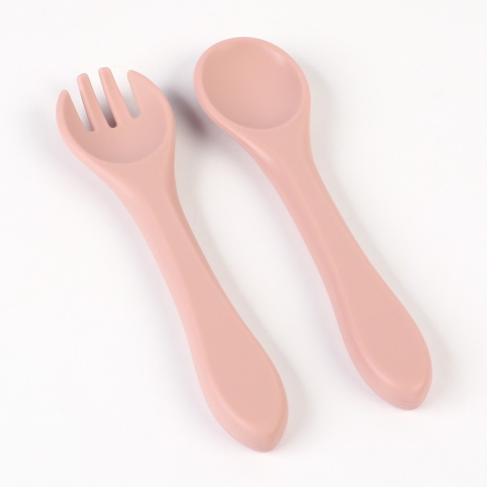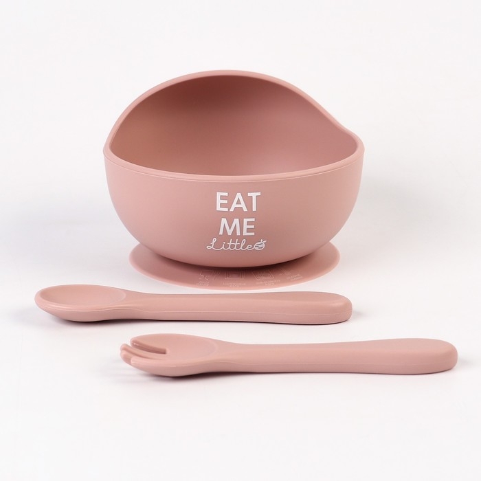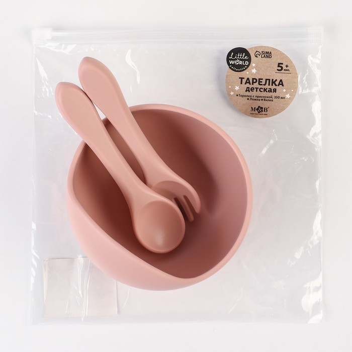 Тарелка детская на присоске и столовые приборы M&B, цвет пыльная роза