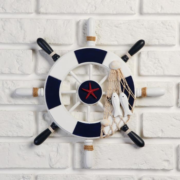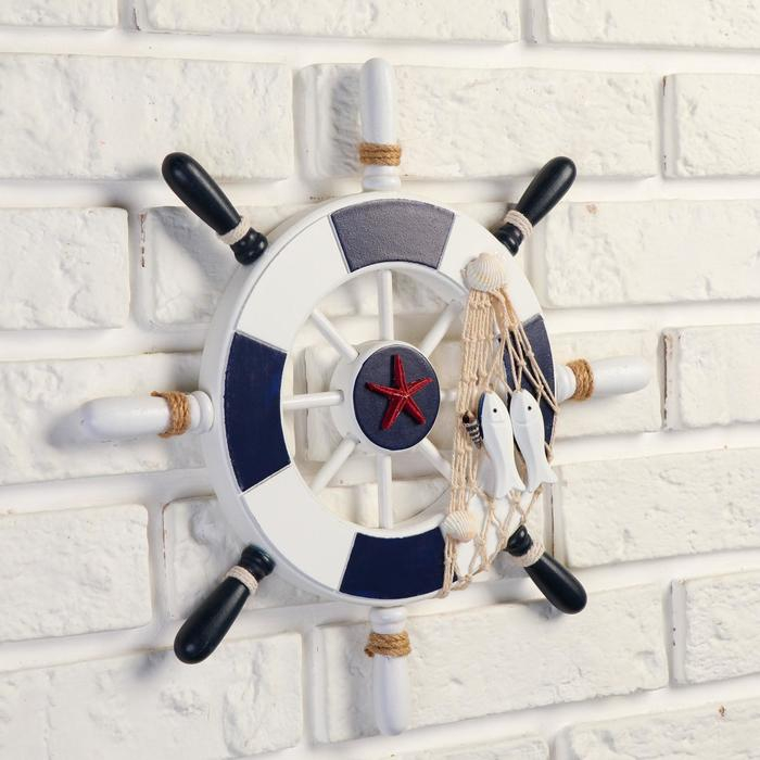 Декор интерьерный «Штурвал» на стену, бело-синий, 33 х 33 х 2 см