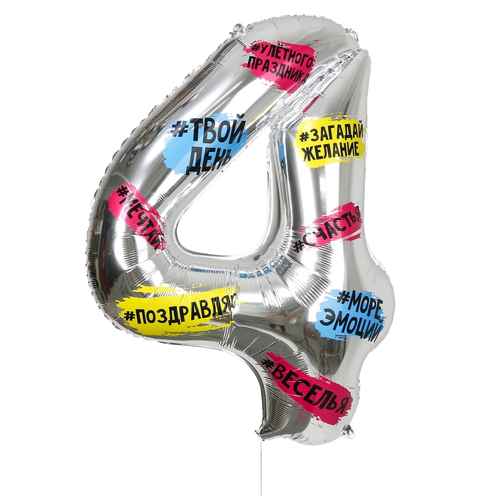Воздушный шар фольгированный 34" Цифра 4, хештеги, с подложкой