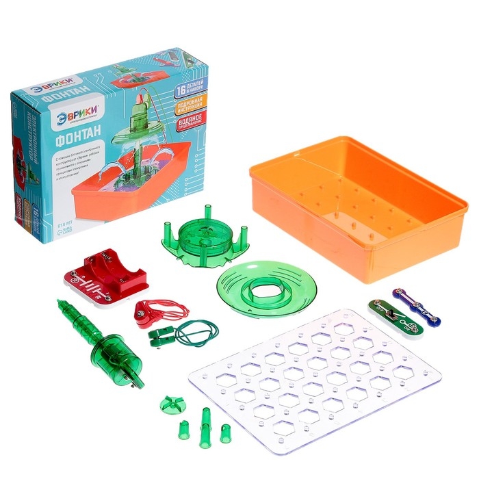 - Набор имеет красочную инструкцию, по ней ребёнок самостоятельно соберёт схему «Фонтан» и испытает её!