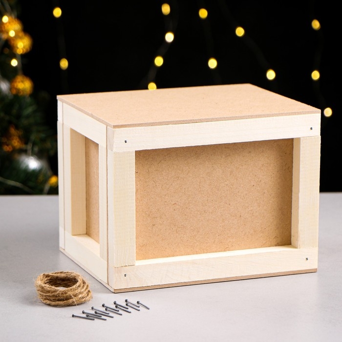 Подарочная коробка "Бандероль" деревянная с гвоздями и веревкой 20×16×15 см