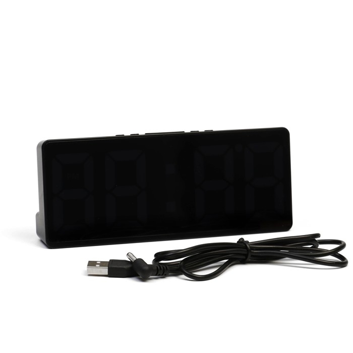 Часы настольные электронные: будильник, термометр, календарь, USB, 15х6.3 см, белые цифры