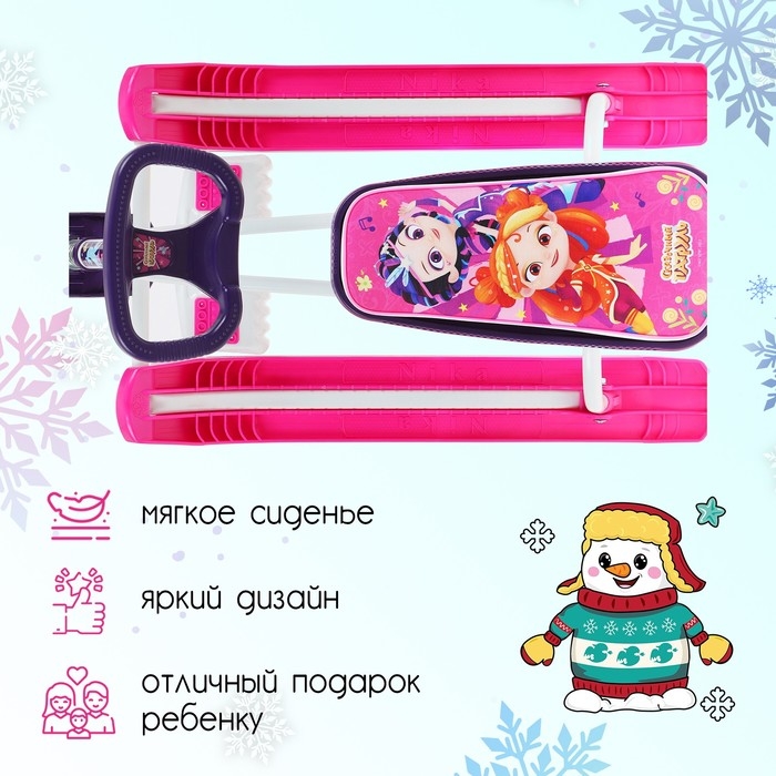 Снегокат с колёсами «Тимка спорт 6 Бабочки», ТС6/БТ, с родительской ручкой, со спинкой и ремнём безопасности