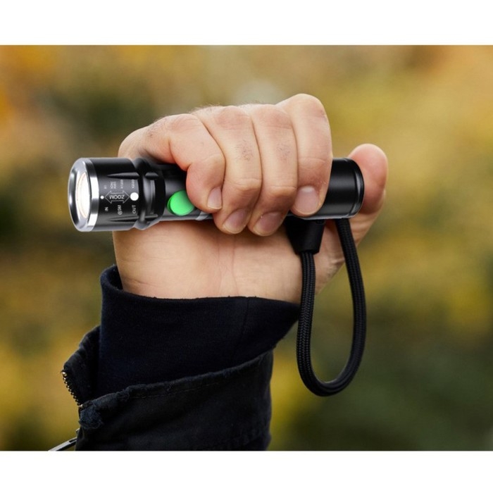 Фонарь ручной аккумуляторный, 800 мАч, 10 Вт, XPE, USB, IPX6, ZOOM, индикатор заряда