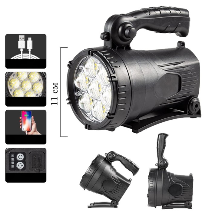 Фонарь светодиодный аккумуляторный ручной, 4000 мАч, 25 Вт, 1500 лм, LED, USB, IP45