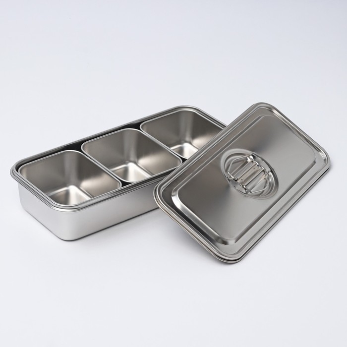 Контейнер для еды из нержавеющей стали 3 секции, 34×15,5×7 с крышкой