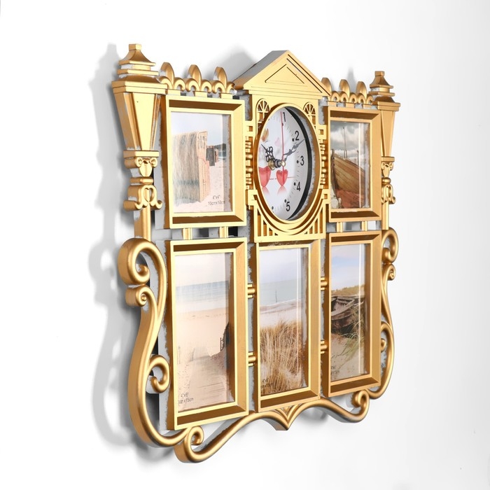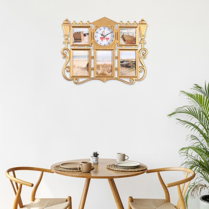Настенные часы с фоторамками - оригинальный подарок, который никого не оставит равнодушным. Эти часы настоящая находка для тех, кто ценит качество и неповторимый дизайн. Настенные часы - это не только функциональный предмет, но и настоящий декоративный аксессуар, они разнообразят интерьер любой спальни или гостиной, подчеркнут стиль и гармонию вашего дома. Вместе с часами идут 5 рамок для фотографий, сделайте подборку из лучших и любимых фотографий, которые будут напоминать вам о каком-то приятном моменте вашей жизни.
