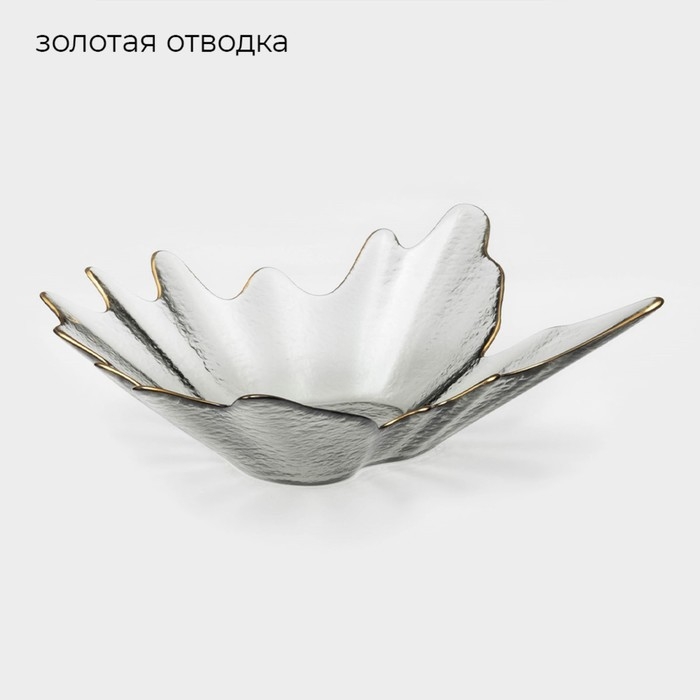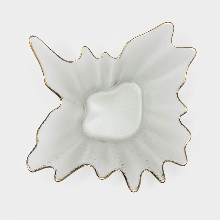 Тарелка сервировочная «Рени» изготовлена из качественного и прочного стекла. Посуда имеет необычную форму, красивый рельеф и отводку золотом по краю. Такая тарелка станет изюминкой сервировки и украсит праздник.