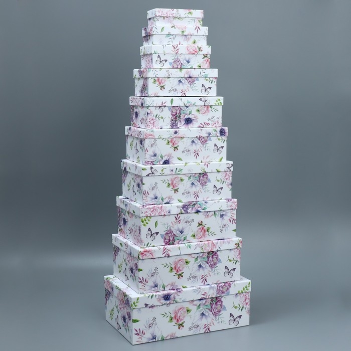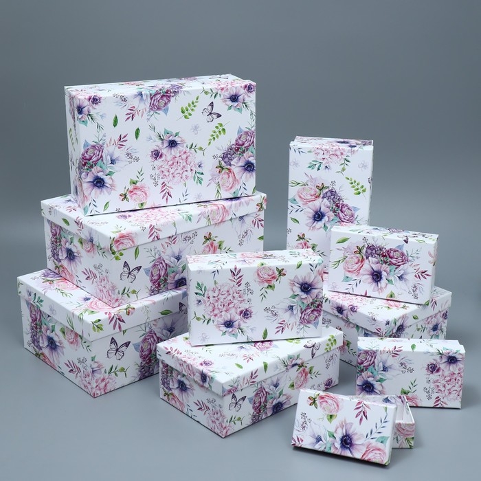 Набор коробок 10 в 1, упаковка подарочная, «Цветы», 12 х 7 х 4 - 32.5 х 20 х 12.5 см