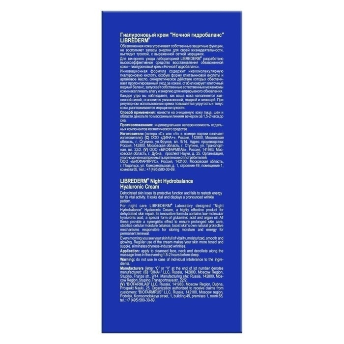 Гиалуроновый крем Librederm ночной гидробаланс 50 мл
