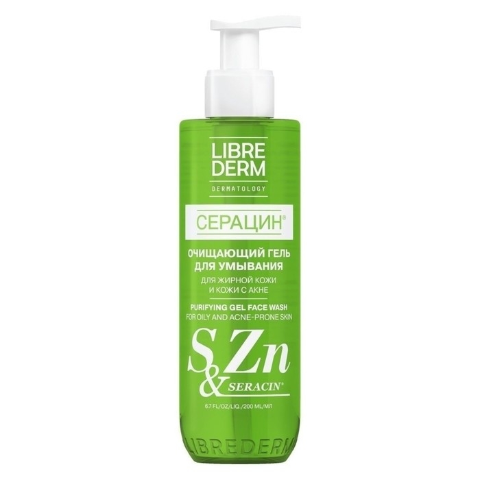 Очищающий гель для умывания Librederm Серацин разработан для жирной, проблемной кожи лица и эффективно работает против акне. Мягко удаляет загрязнения и макияж, подготавливает кожу к нанесению уходовых средств. Не сушит и не стягивает.