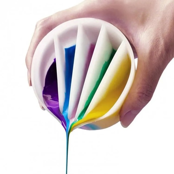 Силиконовый стаканчик с разделителями из высококачественного материала позволит создавать красивые эффекты при рисовании в технике флюид-арт.