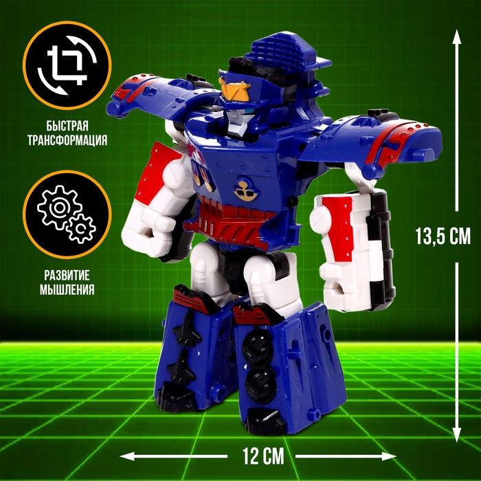 Робот с трансформацией — игрушка 2 в 1. Её можно за несколько шагов превратить в корабль. Процесс трансформации происходит плавно и без усилий, что позволяет ребёнку легко трансформировать робота, подстраиваясь под игровой сюжет.