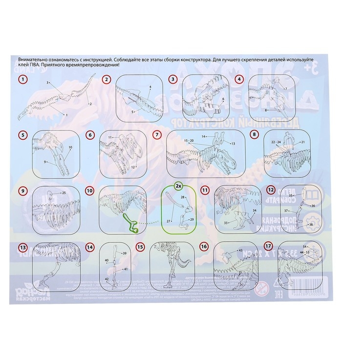Конструктор «Скелет Тираннозавра» — это многофункциональная игрушка, которая способствует развитию моторики и образного мышления у ребёнка.