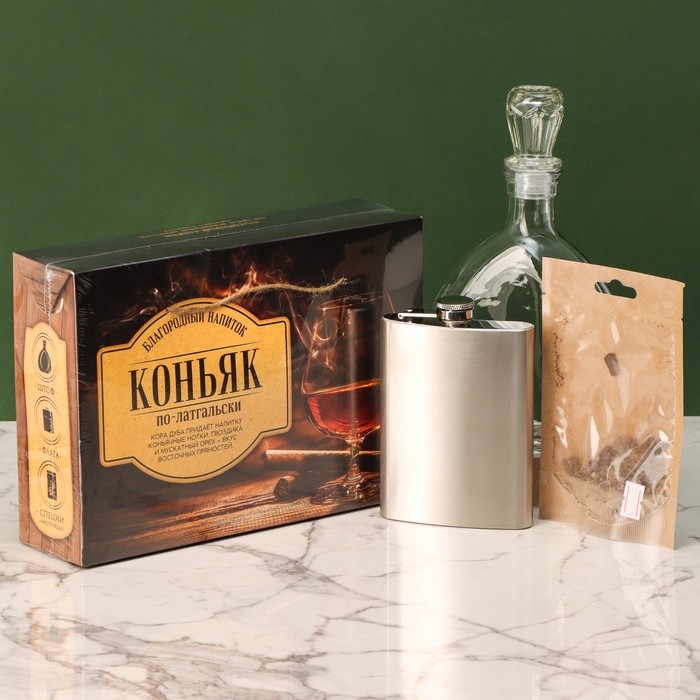 Набор для приготовления алкоголя «Коньяк по-латгальски»: набор трав и специй 6 г., штоф 500 мл., фляжка 240 мл., инструкция