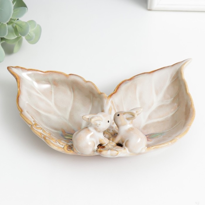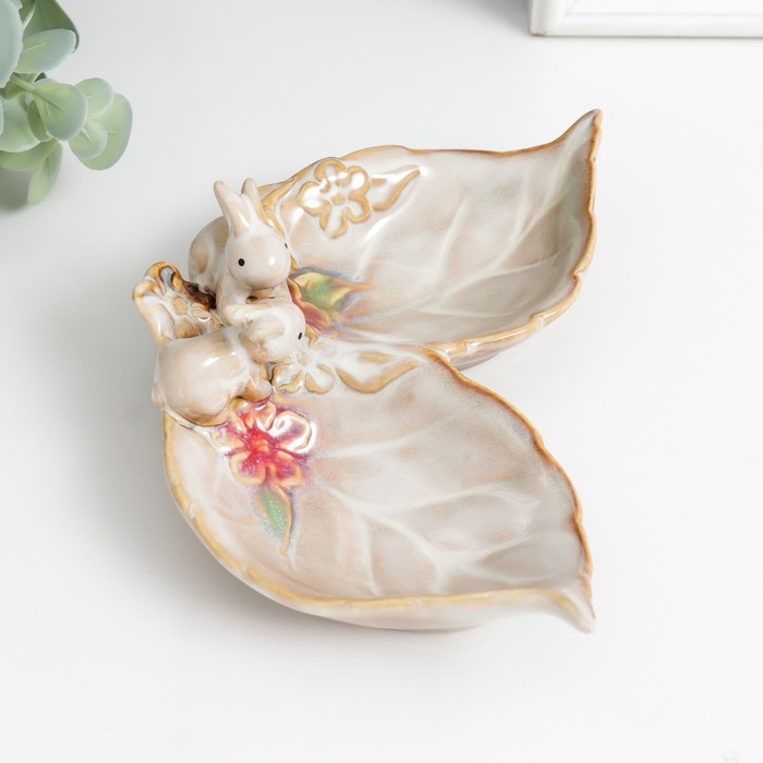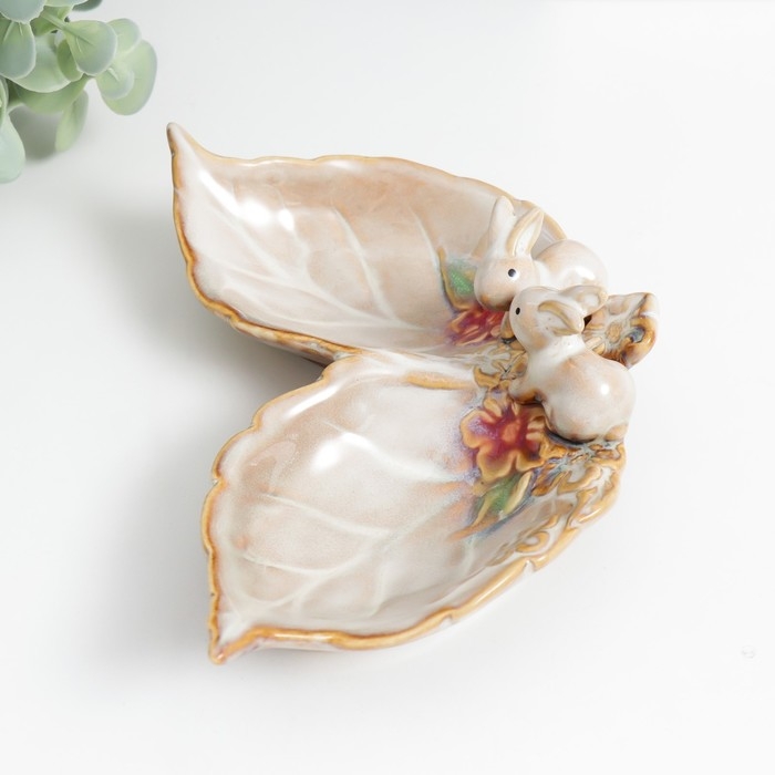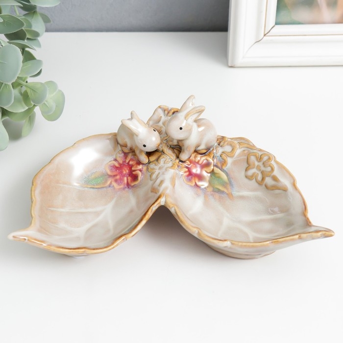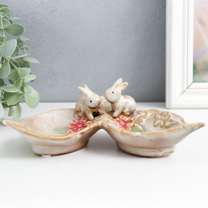 Сувенир керамика подставка "Зайчики у цветов" 11,5х17х6 см