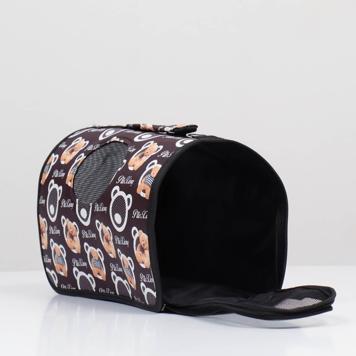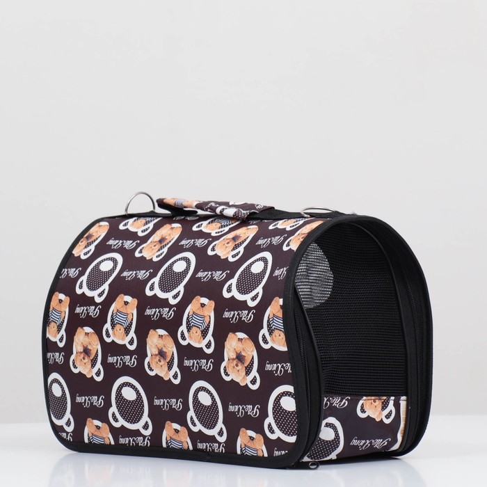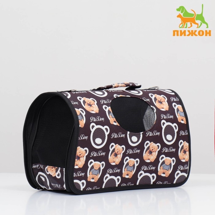Сумка-переноска каркасная "Бурые медведи", размер S, 37,5 х 17 х 22 см, коричневая