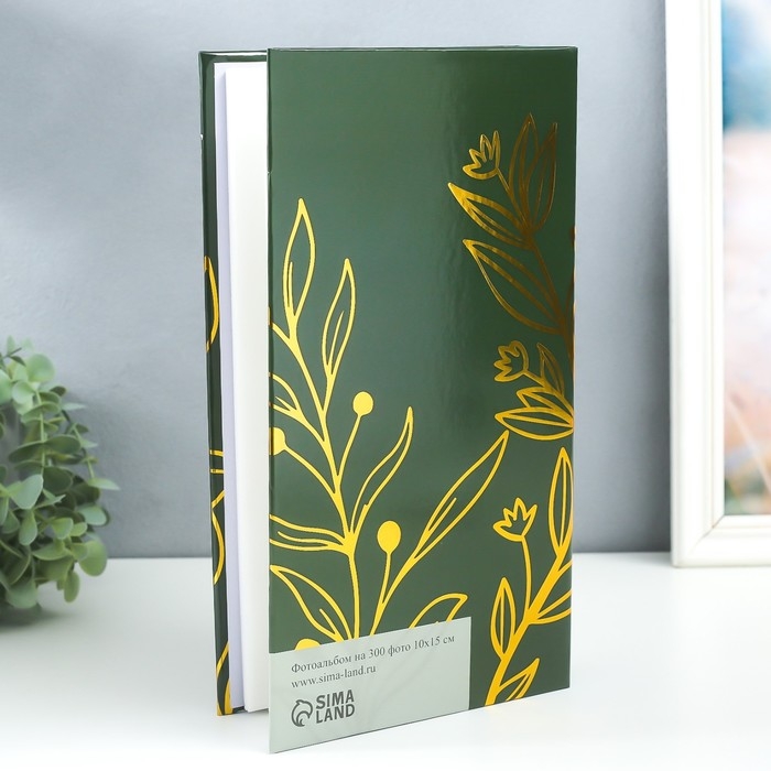 Фотоальбом на 300 фото 10х15 см "Золотые растения" золото 33,5х17,5х5 см
