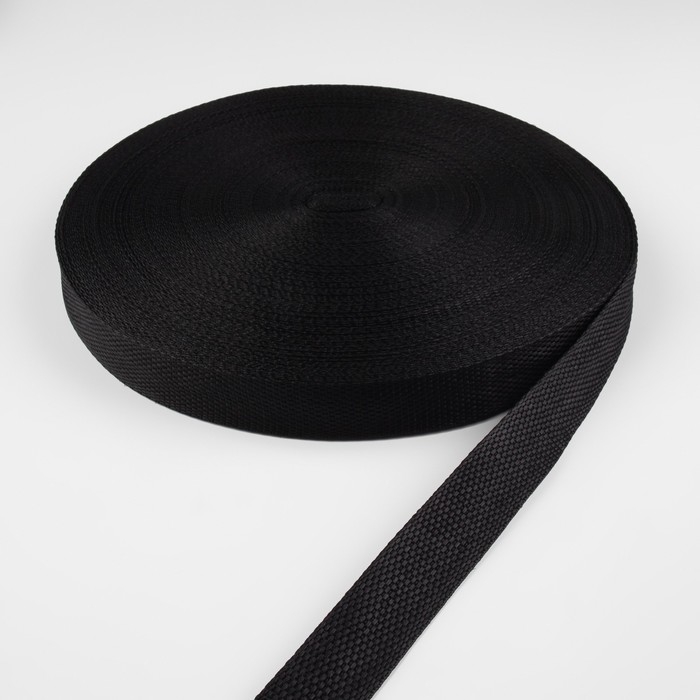 Стропа ременная, 25 мм, 50 ± 1 м, плотность 7,5 гр/м, цвет чёрный