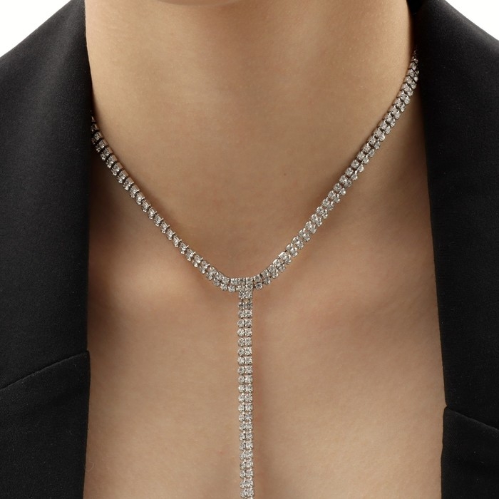 Набор 2 предмета: серьги, колье «Лёд» дорожка мелкая, цвет белый в серебре, 30 см