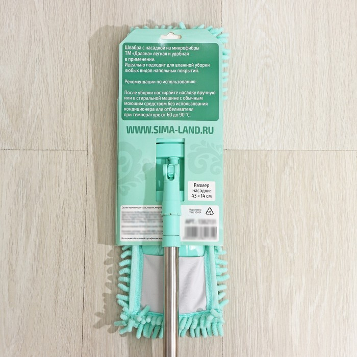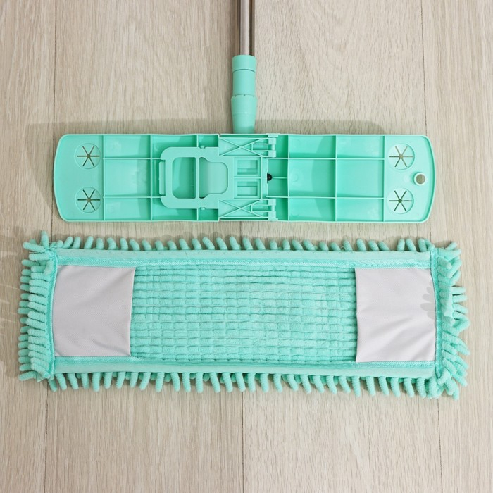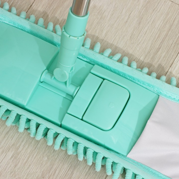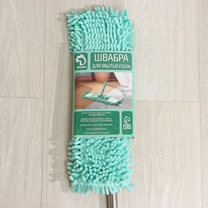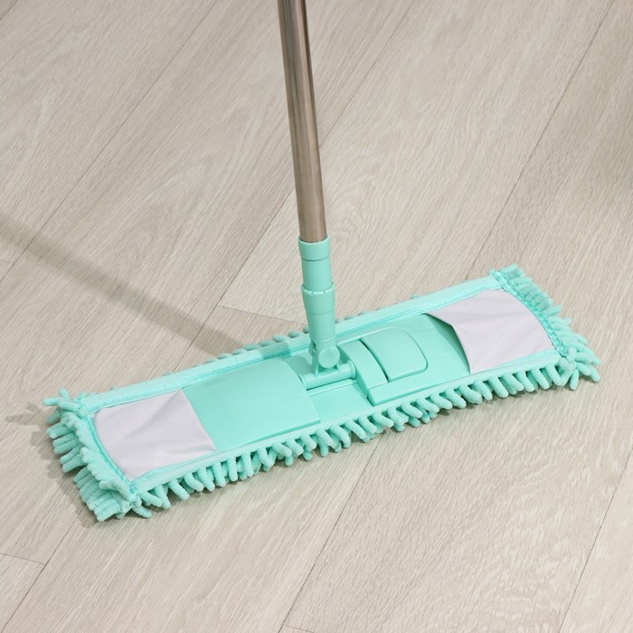 Швабра для мытья пола плоская Доляна, насадка из микрофибры букля 42×12 см, телескопическая стальная ручка 80(130) см