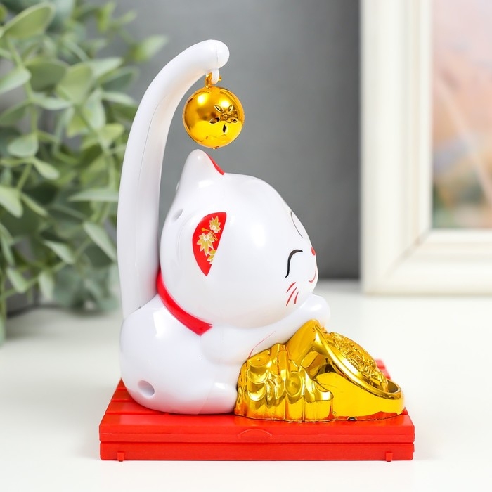 Маятник пластик от солнечной батареи "Манэки-нэко со слитком и бубенчиком" 8,8х8,8х11,5 см