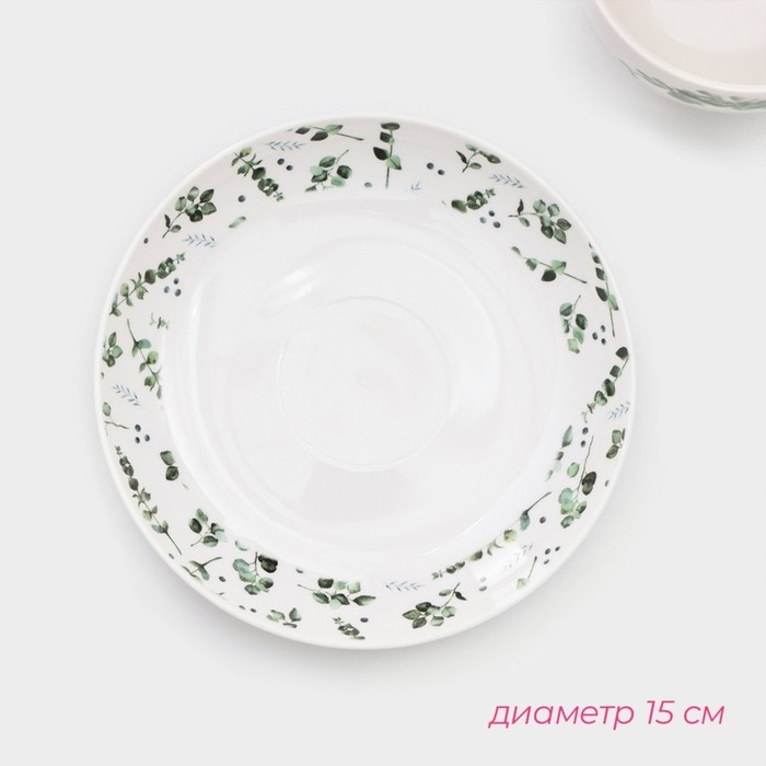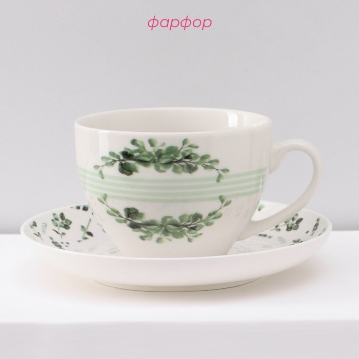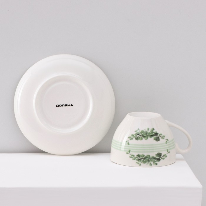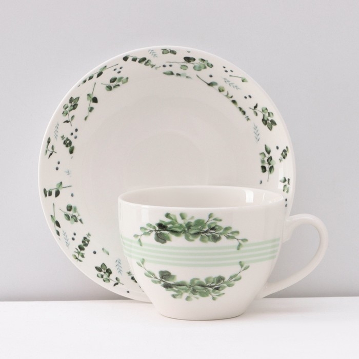 Сервиз фарфоровый чайный Доляна «Эвкалипт», 12 предметов: 6 чашек 280 мл, 6 блюдец d=15 см