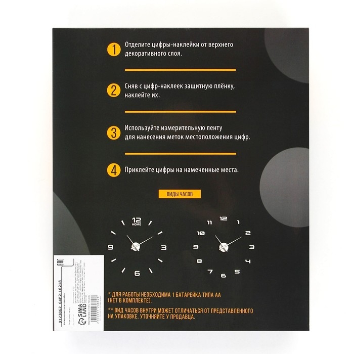 Часы настенные интерьерные большие, 3d "Акстелл",бесшумные, наклейка, d-70 см