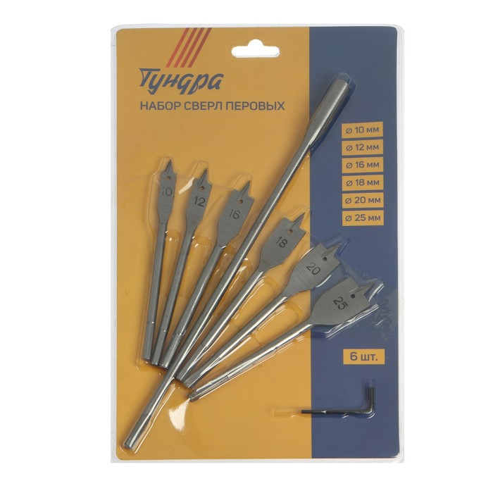 Набор сверл перовых ТУНДРА, шестигр. хвост., 10-12-16-18-20-25 мм + удлинитель 300 мм