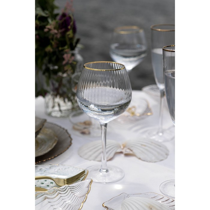 Бокалы серии «Орион» изготовлены из качественного прозрачного стекла. По верху бокала есть золотая отводка, поэтому изделия рекомендуется мыть только вручную. Стекло с красивым вертикальным рельефом. Современный лаконичный дизайн обеспечивает особое эстетическое удовольствие.