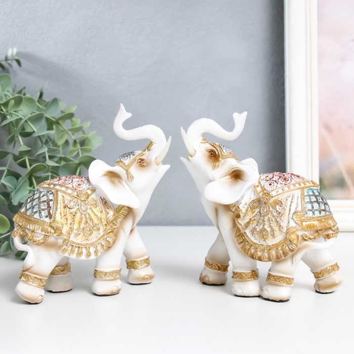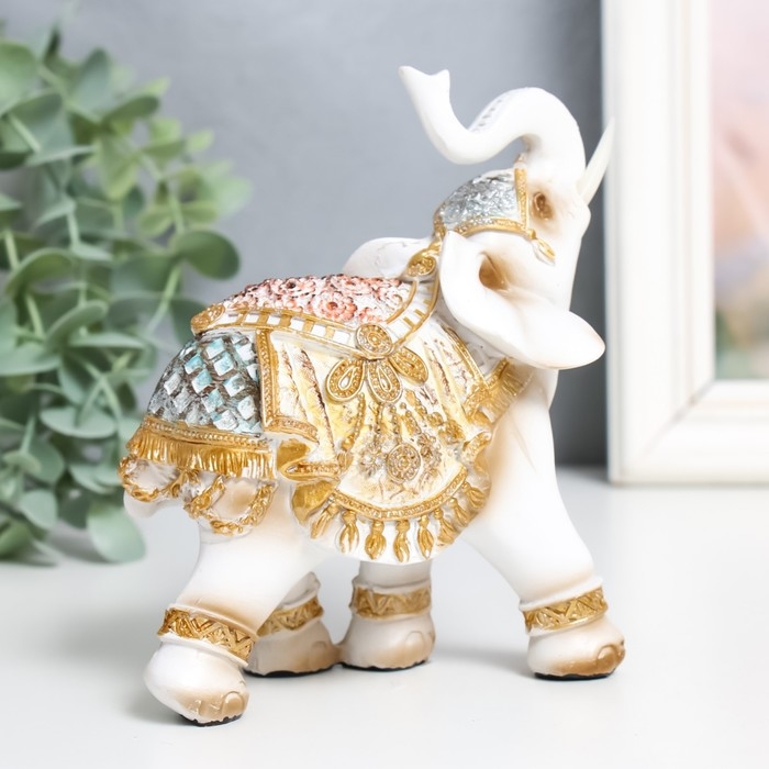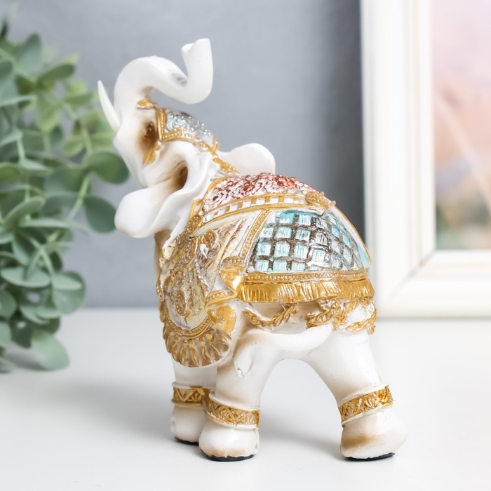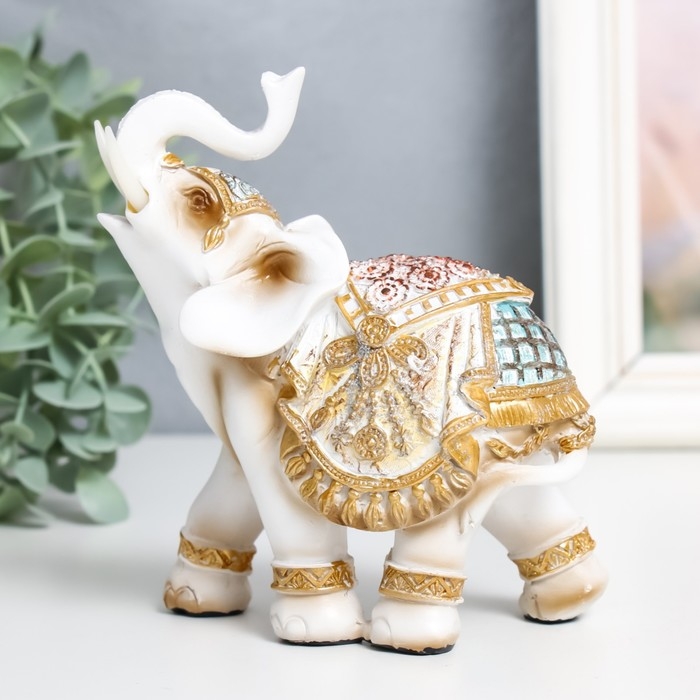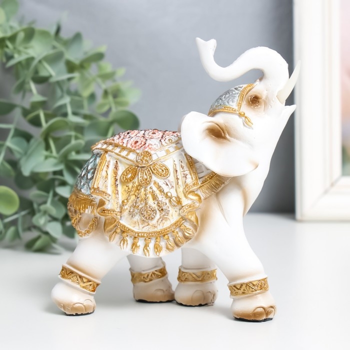 Сувенир полистоун "Белый слон в золотой богатой попоне" МИКС 6х11х13 см
