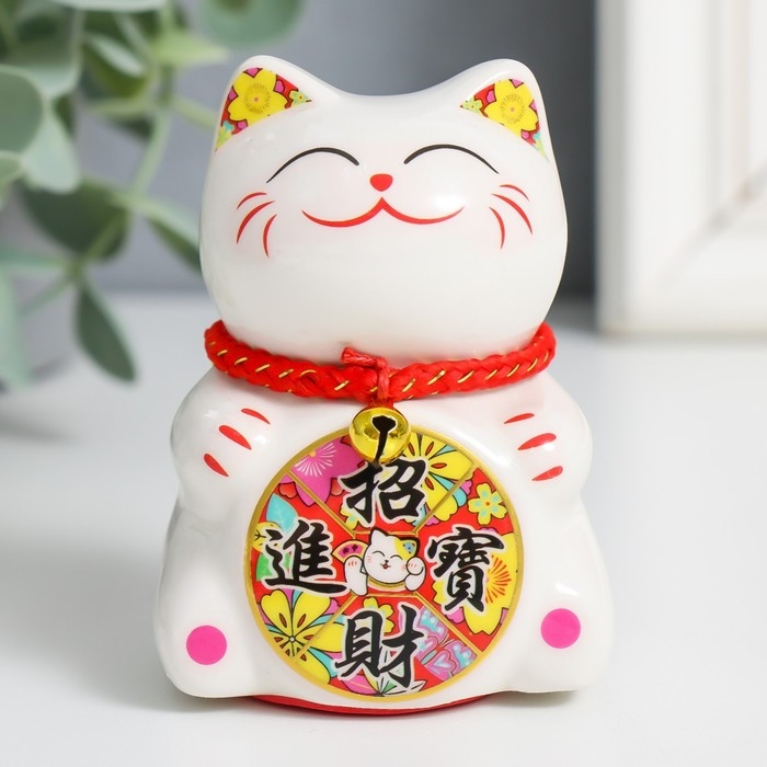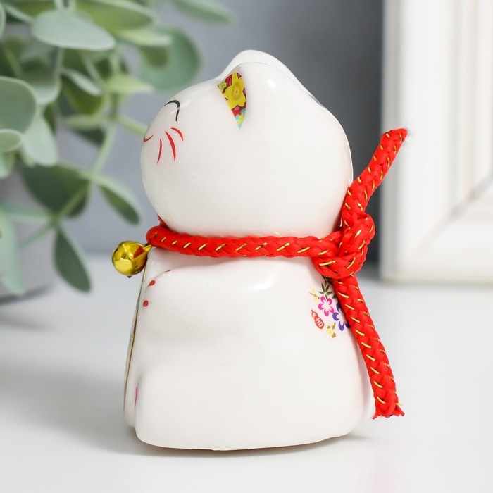 Сувенир керамика "Манэки-нэко с колесом счастья" 7,5х6х5,5 см МИКС
