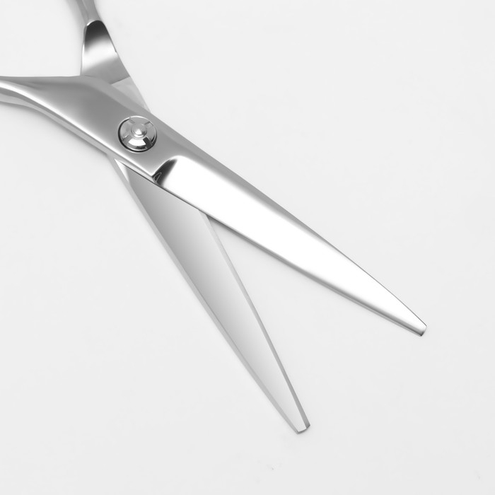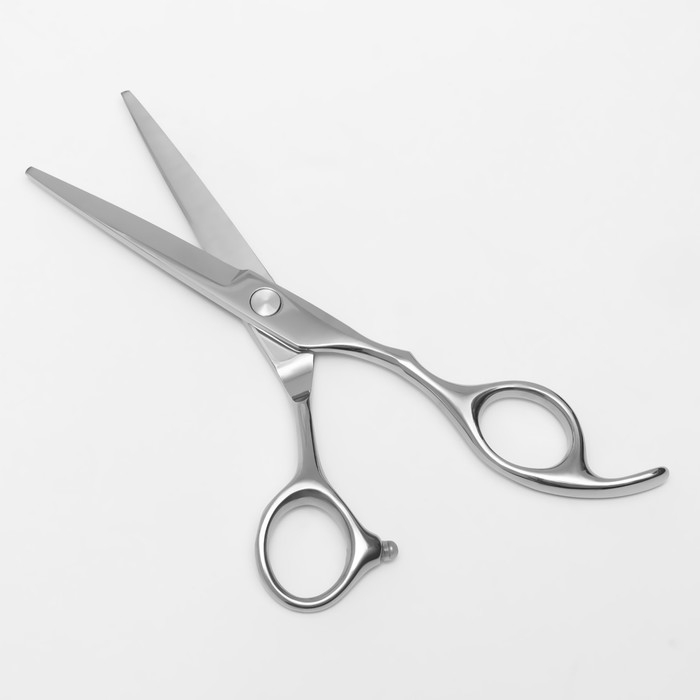 Ножницы парикмахерские с упором, загнутые кольца, лезвие — 5,5 см, цвет серебристый
