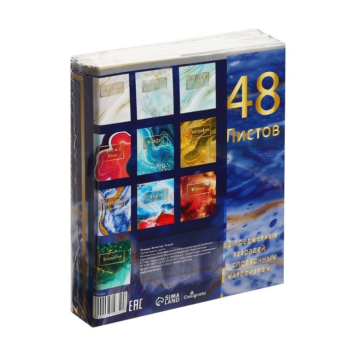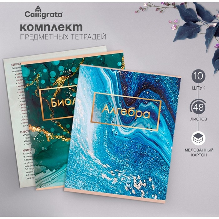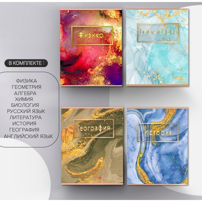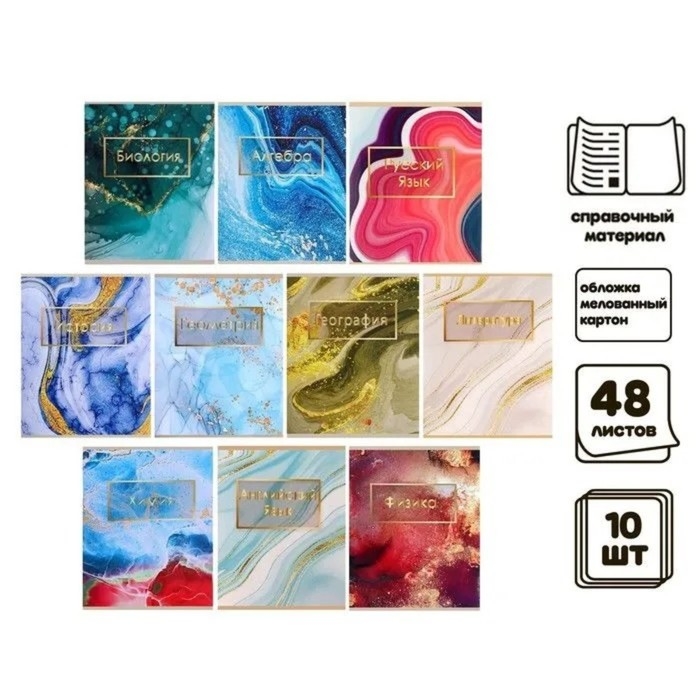 Комплект предметных тетрадей 48 листов "Мрамор светлый", 10 предметов, со справочным материалом, обложка мелованный картон, УФ-лак (полный), блок офсет
