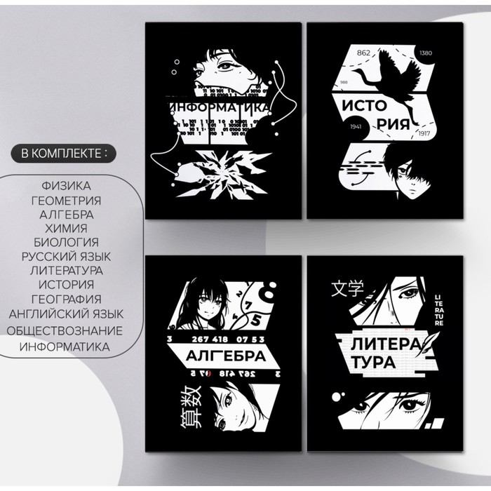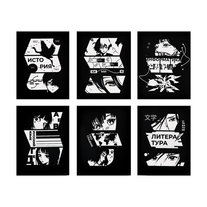 Комплект предметных тетрадей 48 листов, "Комикс Аниме", 12 предметов, со справочным материалом, обложка мелованный картон, УФ-лак (полный), блок офсет