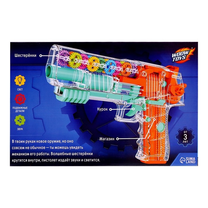 Игрушечное оружие «Техно» — это отличный способ помочь ребёнку развить моторику и воображение. Пистолет с шестерёнками обязательно понравится детям всех возрастов.