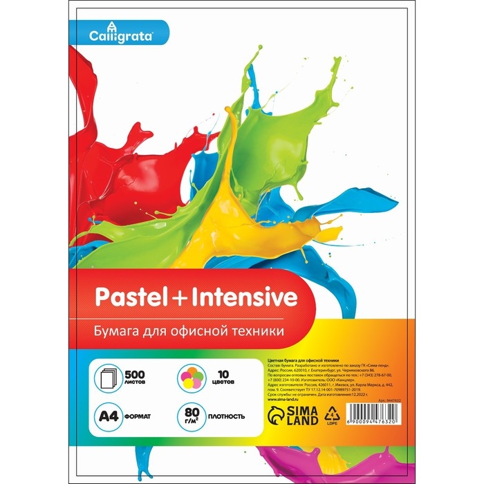 Бумага цветная А4 500л Calligrata Пастель + интенсив МИКС 10цв 80г/м2