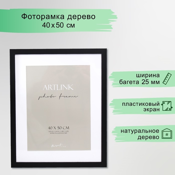 Фоторамка МДФ "Ellis" 40х50 см с паспарту, чёрный (пластиковый экран)