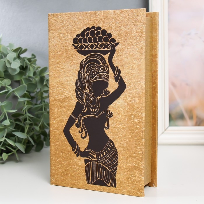 Сейф-книга дерево кожзам "Африканка с вазой с фруктами" 21х13х5 см