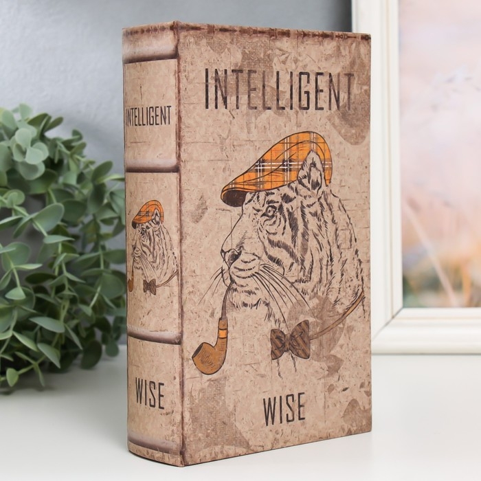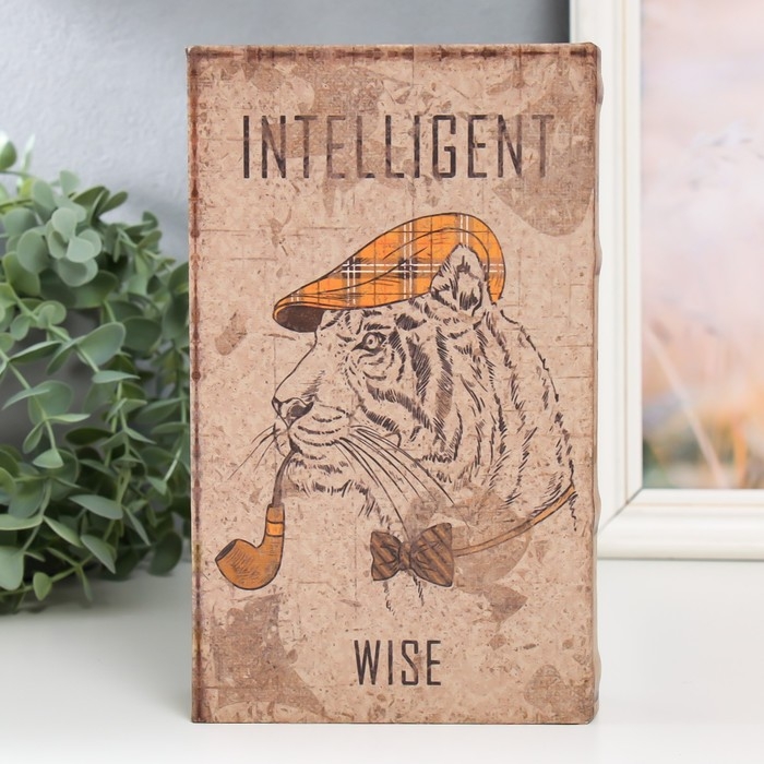 Сейф-книга дерево кожзам "Тигр в кепке и с трубкой" 21х13х5 см
