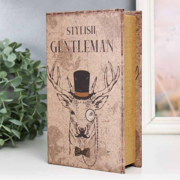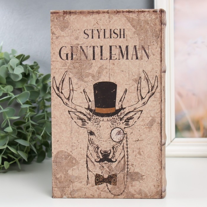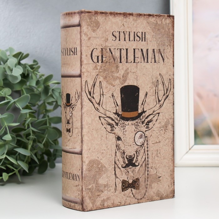 Сейф-книга дерево кожзам "Олень в цилиндре и с пенсне" 21х13х5 см