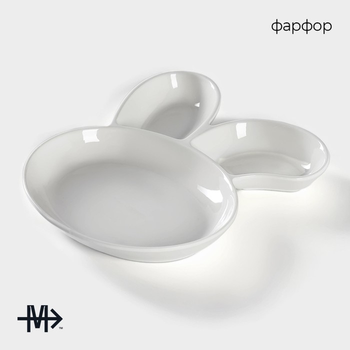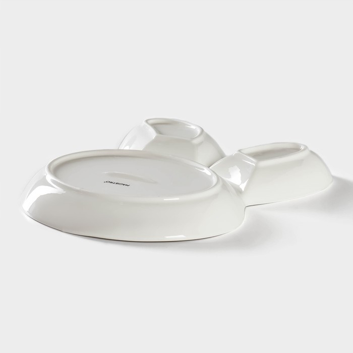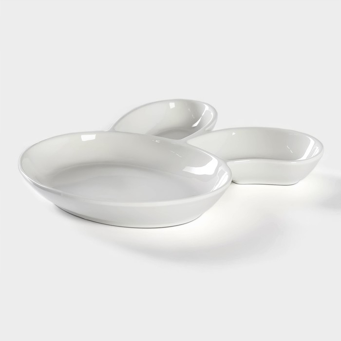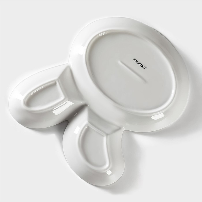 Блюдо фарфоровое для подачи Magistro «Ушастый зай» с двумя соусниками, 27×22,5 см, цвет белый