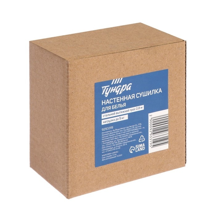 Настенная сушилка для белья ТУНДРА, стальной вытяжной трос 2.8 м. нагрузка до 5 кг.